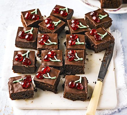 These easy-to-make, fudgy brownies, full with retro ornament, marry a much-loved flavour pairing of cherry and chocolate