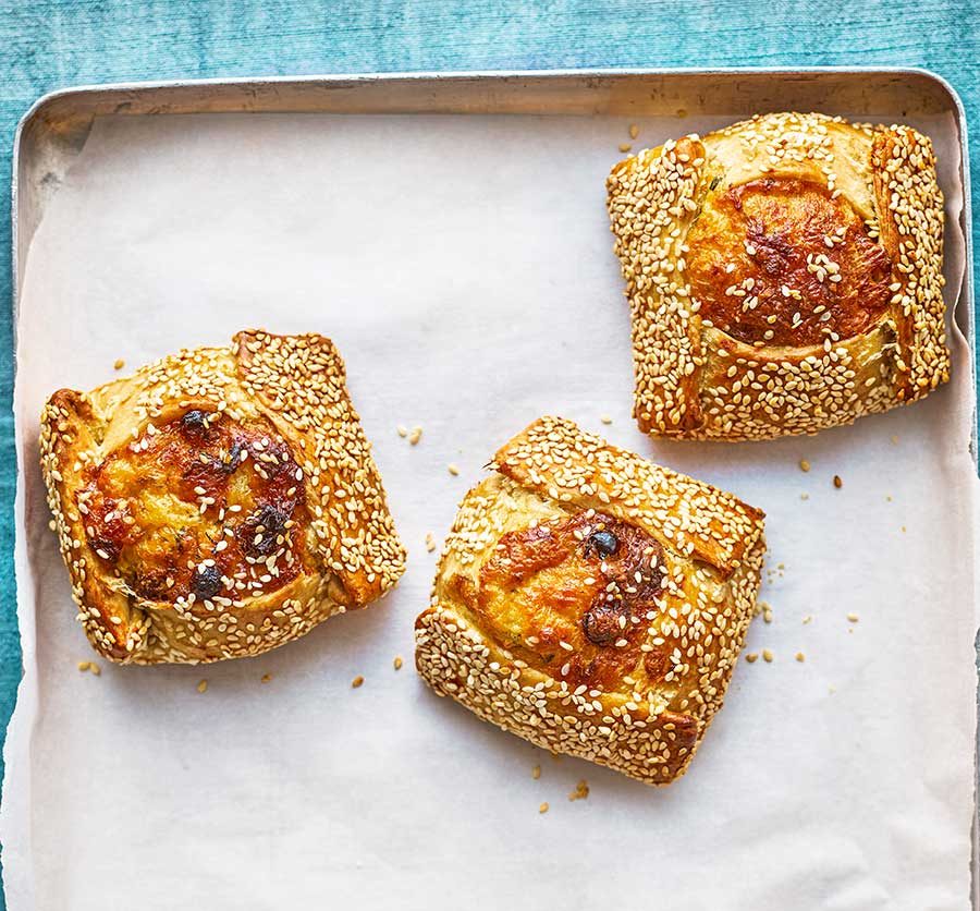 Divide the filling into six and form into balls (about 65g every). Place one ball of filling into the center of every pastry disc on its plain facet. Elevate the left and proper edges of the pastry over the filling so it barely overlaps it on the edges, leaving the center uncovered. Repeat with the highest and backside edges.