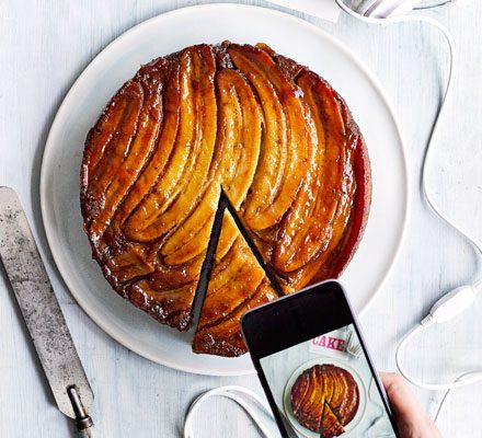 Sticky upside-down banana cake