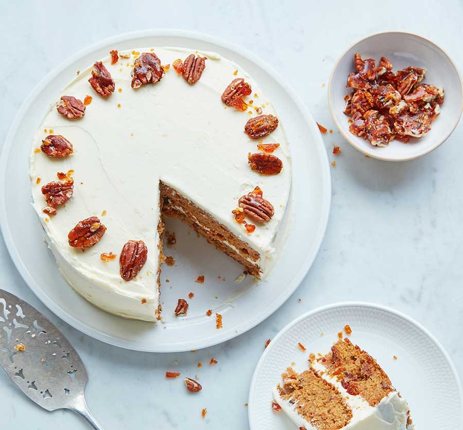 To assemble, place one sponge, flat-side up, on a cake stand or plate and unfold with a 3rd of the icing. Scatter with many of the remaining smashed praline, then high with the opposite sponge, additionally flat-side up. Unfold the remainder of the icing excessive and sides, then embellish with the entire praline pecans. Chill for 1 hr to set, then slice and serve with any remaining smashed praline for sprinkling over. Will hold in an hermetic tin for 3 days.