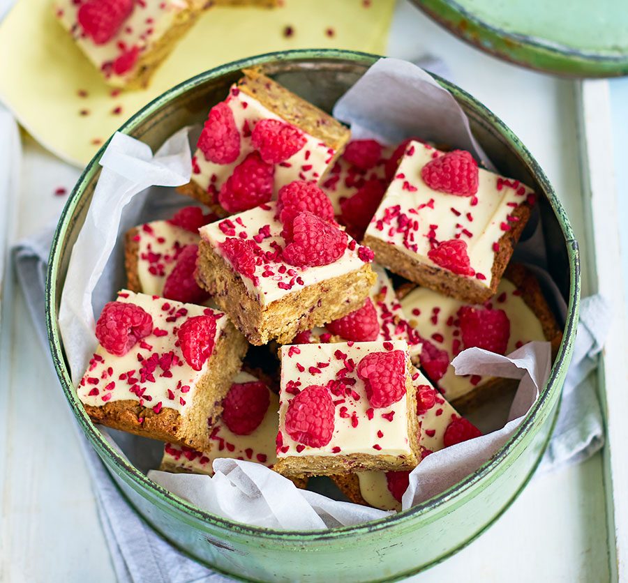 For the topping, soften the white chocolate in a heatproof bowl set over a pan of simmering water, making certain the bowl doesn’t contact the water, or in 20-second bursts within the microwave. Pour this over the cooled flapjacks, unfold to the sides, then scatter over the recent and freeze-dried raspberries. Depart to set for 1 hr, then minimize into 12 massive or 24 small squares. Will maintain chilled for 3 days. Serve at room temperature.